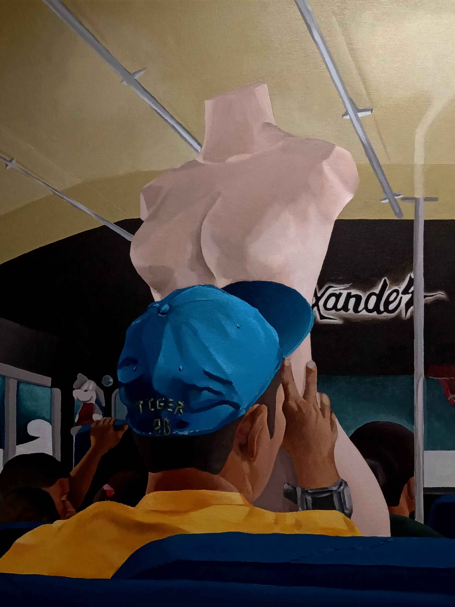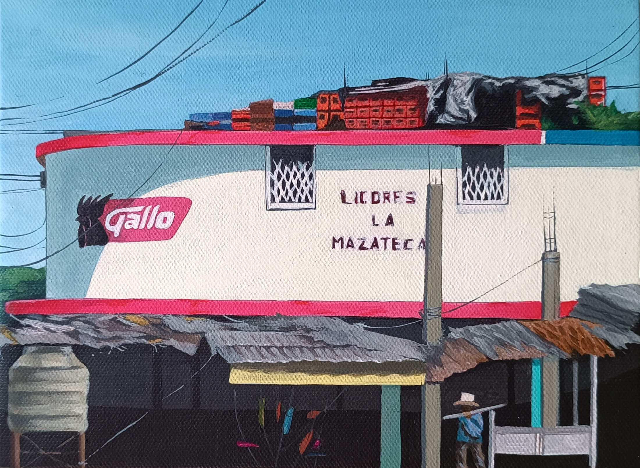 La serie de pinturas muestran un acto cotidiano para mí. Me interesa que las personas se detengan, observen y compartan las diferentes formas estéticas de una vida urbana, que posiblemente no les pertenezca, pero existen y también están llenos de vida.
